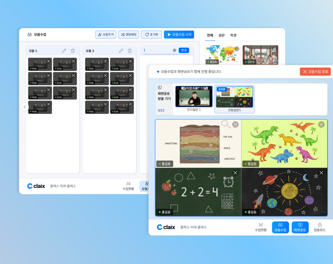 아니라, 수업 흐름에 따라 화면을 나누고, 모으고, 바꿀 수 있습니다.