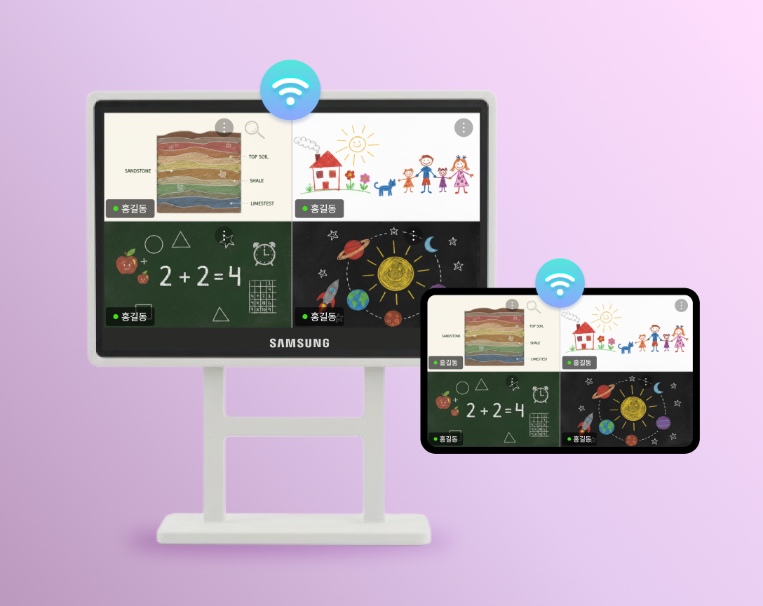 어떤 기기든 설정 없이 하나로 연결됩니다. 복잡한 과정 없이 강사와 학생이 동시에